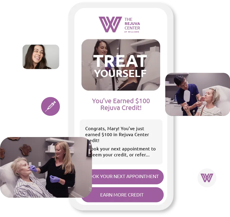 For every friend who redeems their $100 credit, you will receive a $100 credit to your The Rejuva Center at Williams account.